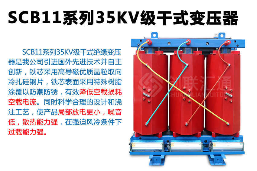 SC(B)11系列35KV環氧樹脂干式變壓器新一代節能產品,該系列配電變壓器產品使用在變壓器電壓直接從35KV電網轉變為400V配電的特殊場合,可減少10KV輸變電環節,使運行維護費用明顯降低。35KV級無勵磁調壓配電變壓器產品通過了家級鑒定,確立為高新技術產品。 產品具有損耗低、阻燃性好、承受短路能力強、體積小、噪音低、耐雷電沖擊性能好,溫度分布均勻等優點,而且由于環氧樹脂干式變壓器不使用變壓器油,不會產生油污染,無爆炸危險。產品可作為配電變壓器廣泛適用于電力系統城網改造,也可用于高層建筑、機場、車站、港口、地鐵待對消防、環保有嚴格、特殊要求的多種場合。