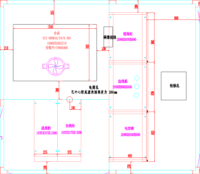 【主要參數】:S11-500KVA變壓器--高低壓配電柜--品字形排列